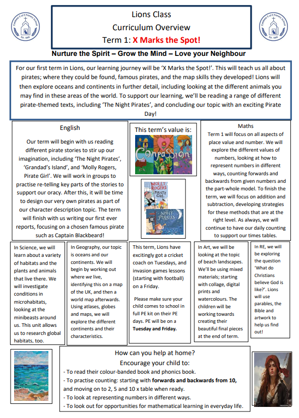 We are the Lions class. The class teacher is Mrs Sayer, and our teaching assistant is Mrs Sanders. Please see below for an overview of the learning in our classroom, which will be updated termly.