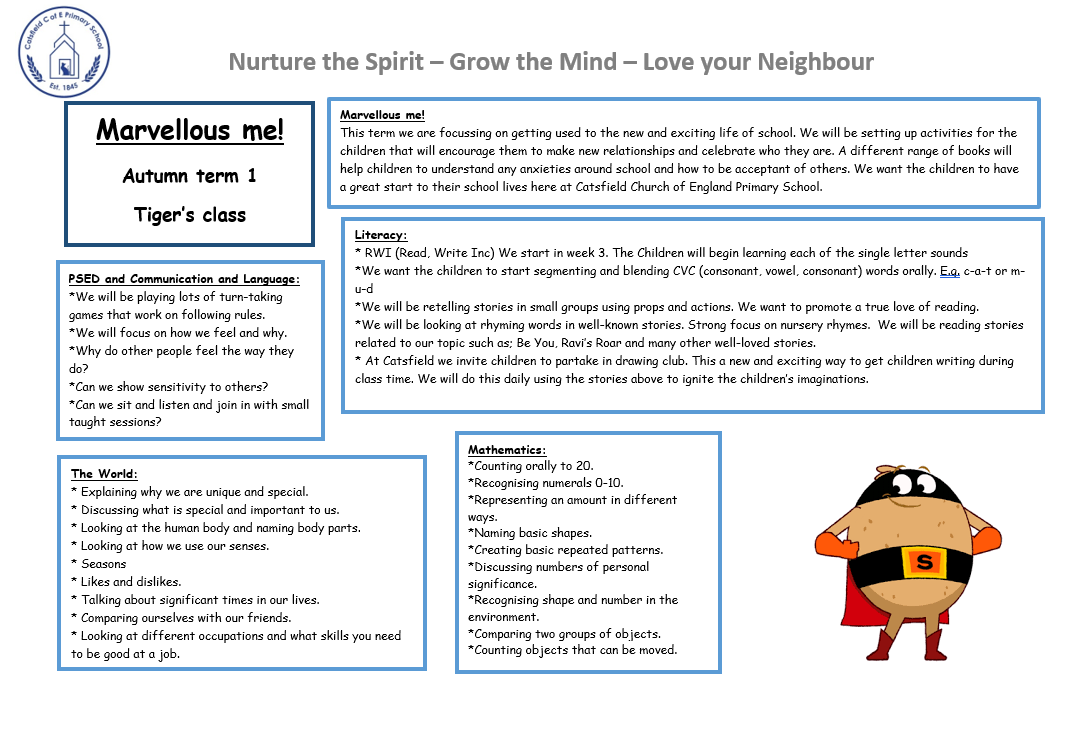 A very warm welcome from all of us in Tigers class. Tigers class is taught by myself Mrs Harwood (class teacher) and Miss Chappill (Teaching assistant). We strive to create a caring, happy and stimulating environment to allow the children to have a fantastic start to their school lives. Please find below a copy of our current medium term plan to see what we get up to. If you have any queries please don't hesitate to contact us.